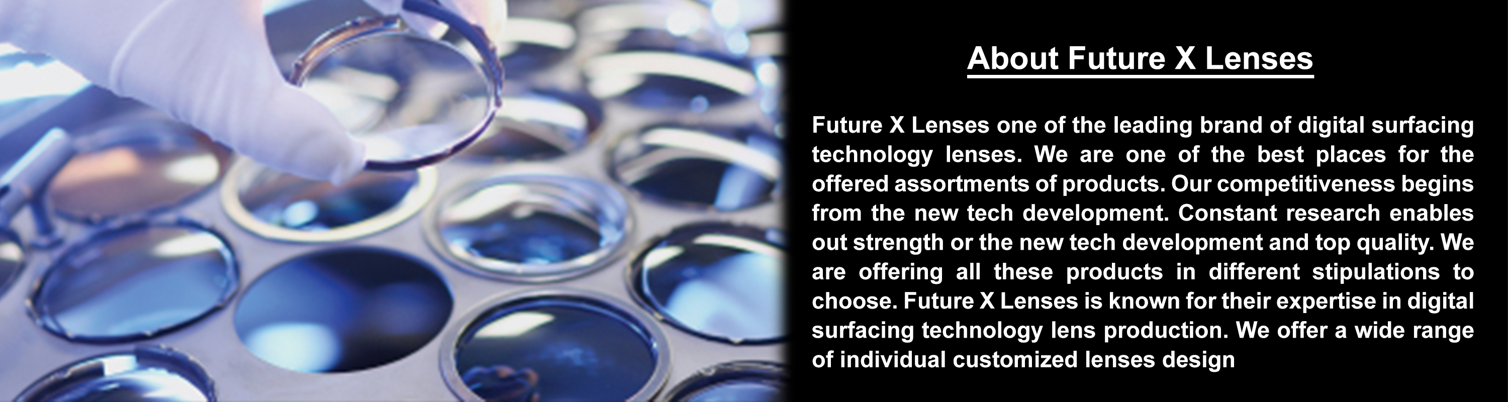 All FUTURE X LENSES are produced with digital surfacing technology. The main benefit of this lens technology is that we can consider the lens surface as a series of individual points. We then cut each of these points – at the pixel level – along multiple axes. Such precision means that we can optimize each lens for every prescription. We can even incorporate frame, fitting and wearing parameters into the lens calculation. The result is a highly personalized lens, every time.
