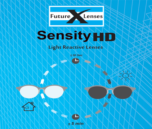 Simply put, SENSITY light activated lenses. They adjust from clear indoors to dark outdoors. But it’s not just about light or dark it’s about everything in between. No matter where you are, or what situation you’re in, SENSITY light activated lenses adapt to the perfect shade so you see with just the right amount of light..
