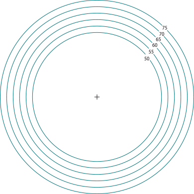 To optimize the prescription result with steeper curved frame selections a suggested base curve is recommended. If a base curve lens clock is not available to measure the front curve of the demo lenses in your frame, you also can use the image provided to gather closest matched curve. Place the right side of the frame down on the image that best matches the demo lens steepness and denote this information on your order.