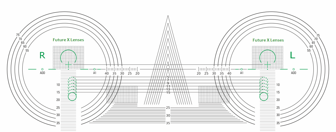 To optimize the prescription result with steeper curved frame selections a suggested base curve is recommended. If a base curve lens clock is not available to measure the front curve of the demo lenses in your frame, you also can use the image provided to gather closest matched curve. Place the right side of the frame down on the image that best matches the demo lens steepness and denote this information on your order.