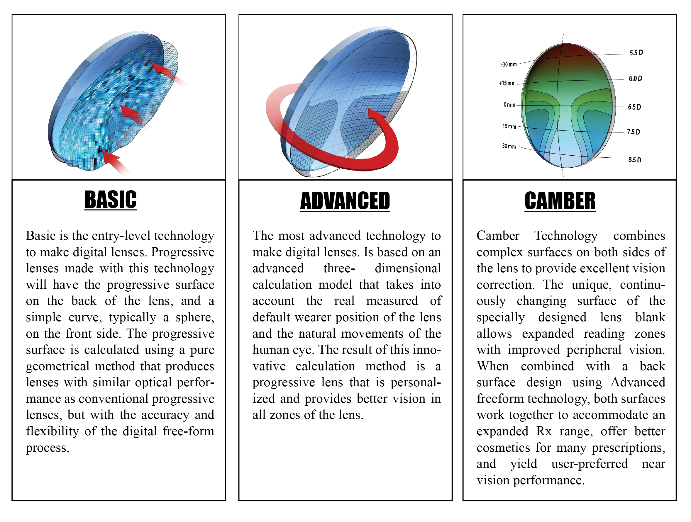 Diameter Reduction, is recommended with hyperopic prescriptions. The overall result in lens thickness improves aesthetically when a smaller diameter lens can be provided by the laboratory.